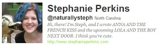 I gotta say Maureen Johnson is one of my faves too. She could write a book out of her tweets. I must follow a lot of Indie authors or just not be on at the right time b/c I'm following most of these authors but never see their tweets. I used to see John Green or Neil Himself but not anymore. Heather- I'm not even two hours from Boone,NC. I'll have to follow him. I think I'm still scared of authors. They're like movie stars to me!