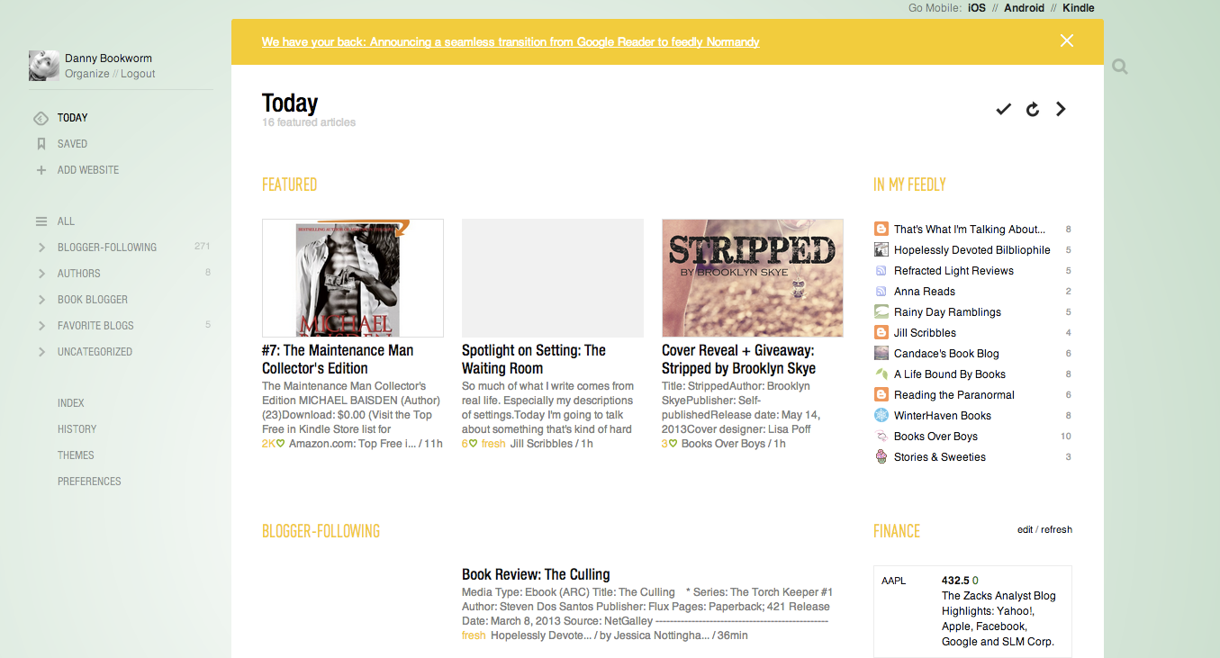[…] Bookworms is also endorsing Feedly, but has a bunch of other options for you to consider in Discussed! Google Reader gone.. and now what? Rachelia from Bookish Comforts pitted desktop readers versus their web counterparts in Google […]