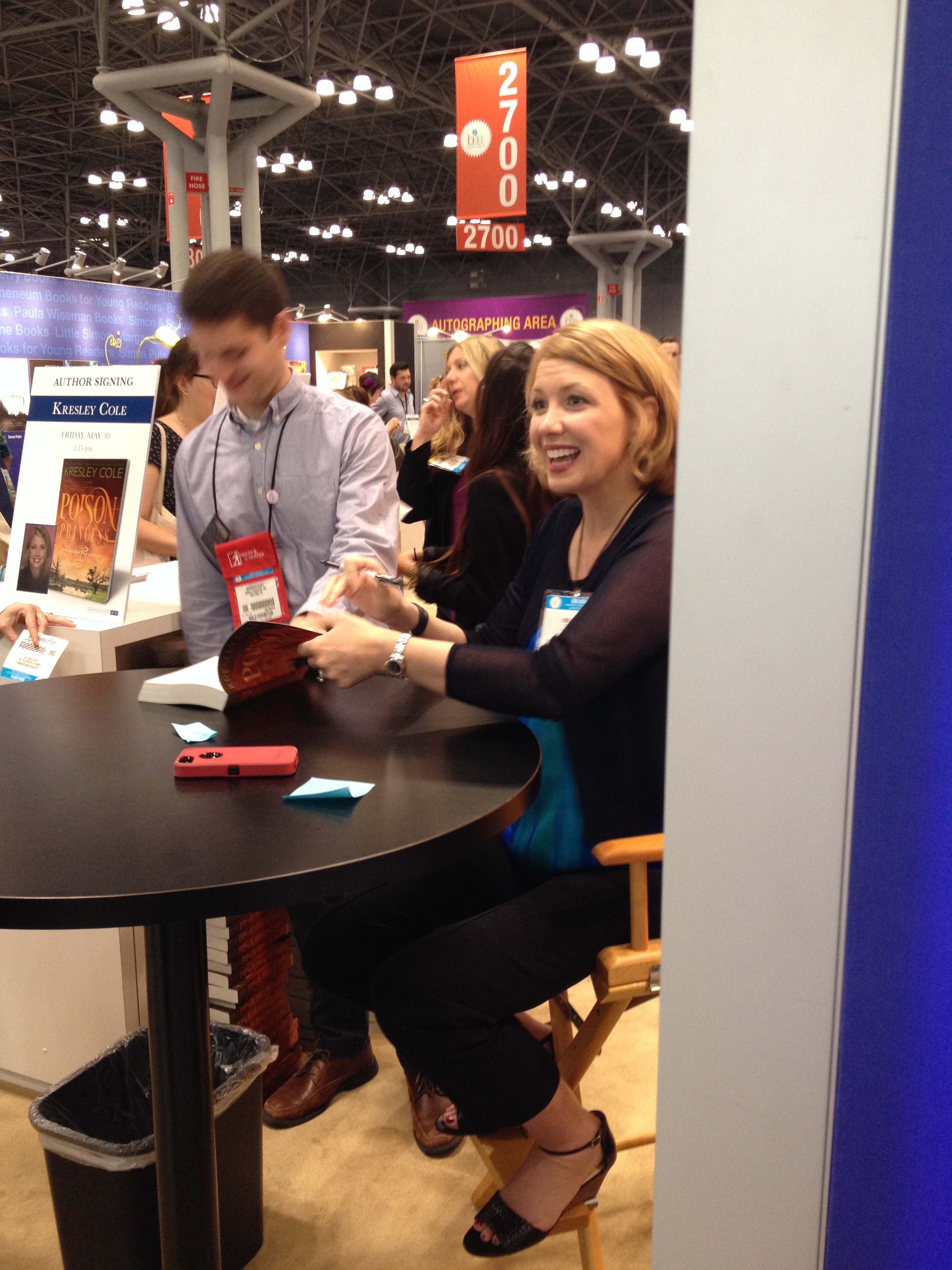 Jeaniene Frost was my first signing on Thursday and thanks to the wonderful Margo who introduced me it was an unforgettable moment! Kresley Cole even remembered me – I was so damn speechless! We haven’t met, but I’m a big fan of her series Poison Princess and posted some fangirly reviews. But that she remembered me and that I was from Germany made me speechless!